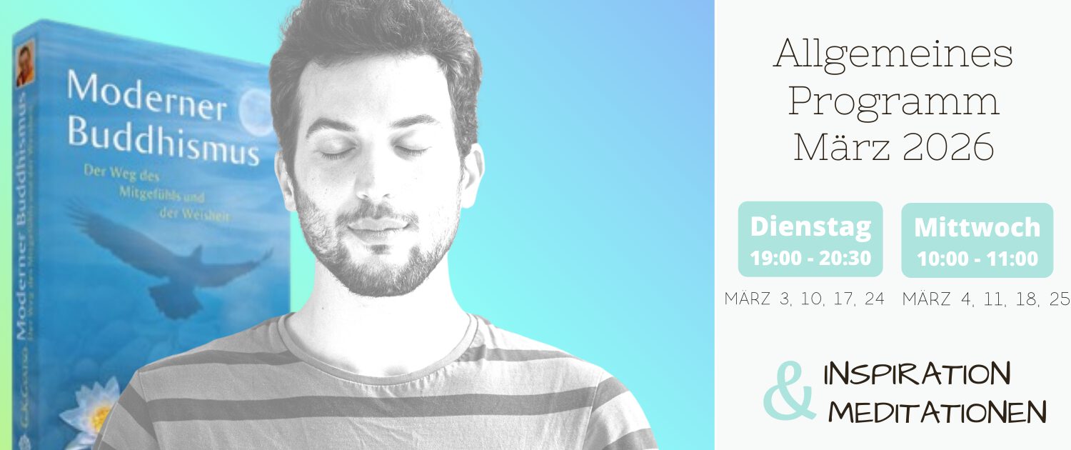 - Dienstag Abend: Allgemeines Programm – Meditation & moderner Buddhismus für alle (Vor Ort & Live Stream)